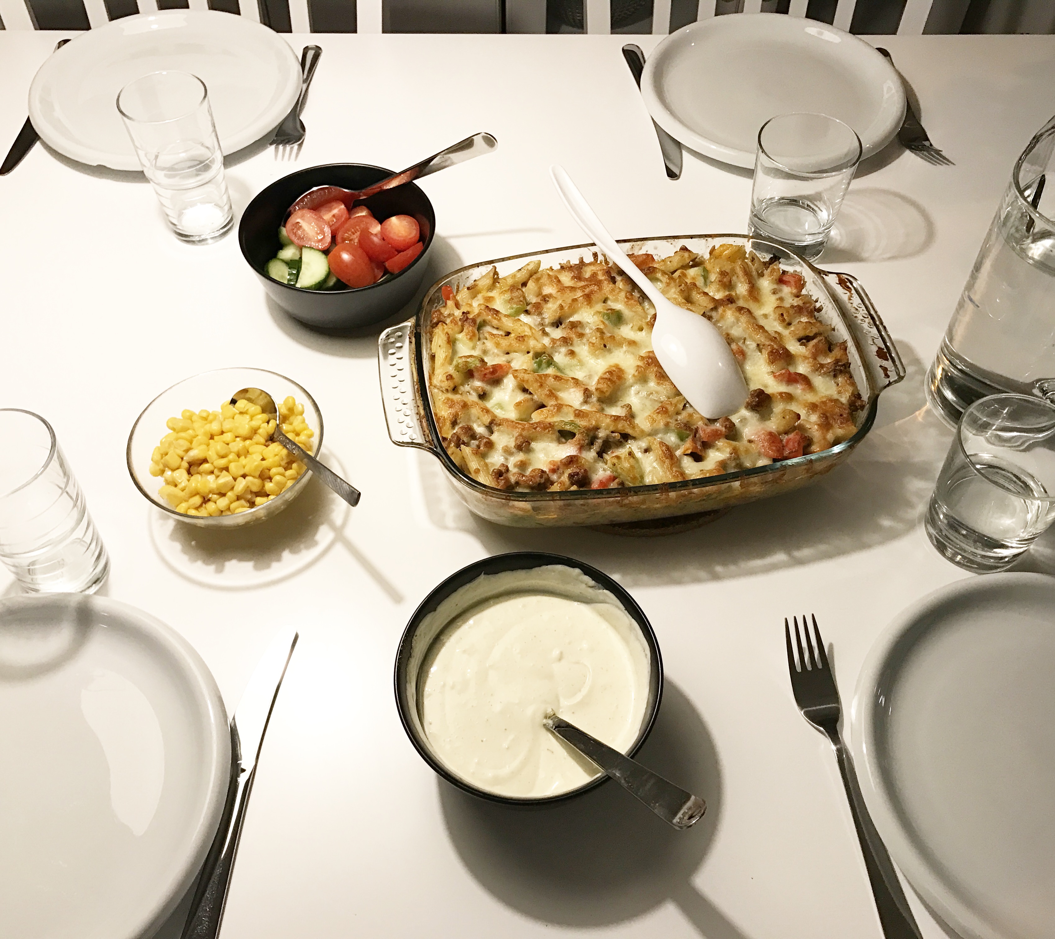 Det blev kräftsoppa med vitlöksbröd och till det ett glas Gewurstraminer från Chile. Så himla gott och mysigt att avsluta en intensiv första vecka på jobbet med en lugn middag med mannen i mitt liv.